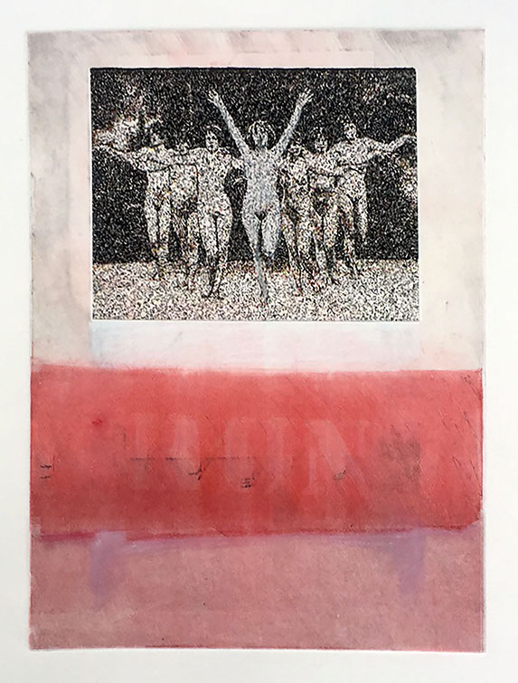 Run, 16 "x 22", monoprint with chine colle and chalk, 2015