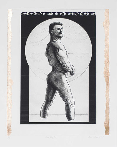 Man Map 1, 11" x 16", intaglio polymer plate etching with copper leaf, 2013
