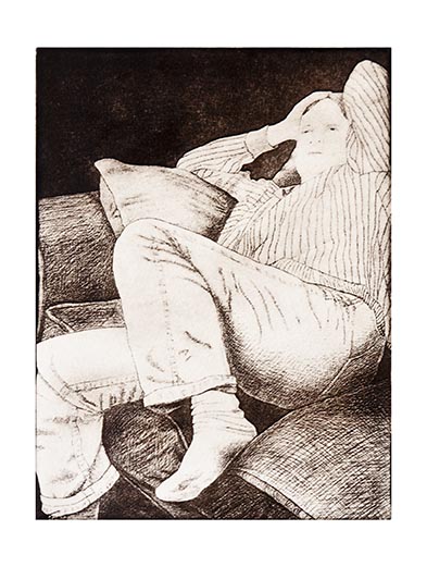 Dog On Pillow, 12" x 9", lithograph, 2012